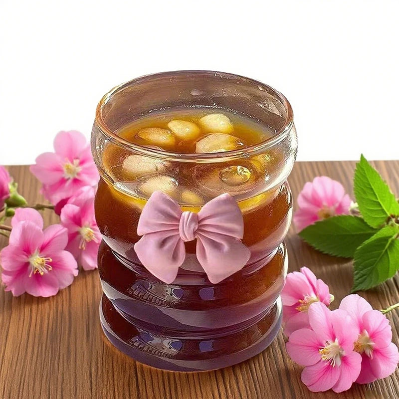 Household Bow Glass Cute Water Cup Bow Glass Cup Striped Cute Doodle Coffee Mug Fruit Tea Lemonade Girls Gift Cartoon